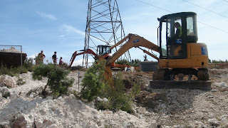 Plataforma contra l’alta tensió. Hui pel matí s’hem acostat a visitar les obres de la línia d’alta tensió que està realitzant Iberdrola a la zona de la Covalta. Cuan ja tornavem cap a casa ens hem trobat amb un dispositiu especial montat per la guardia civil amb tres patrols i un cotxe de paisà vigilant l’eixida del camí.
